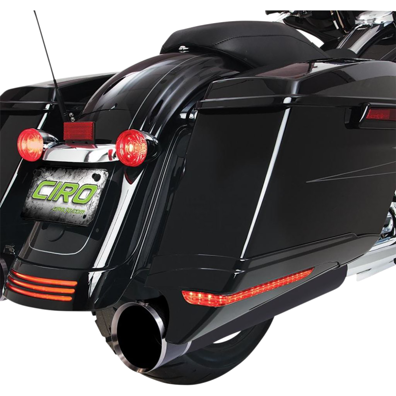 Part Description: Give baggers a smooth, lower, custom look Manufactured from the same ABS material as OE bags Increased visibility and style with LED running, turn, and brake lights on the sides and back Designed not to decrease lean angle clearance or cornering ability Easy Plug-and-Play installation